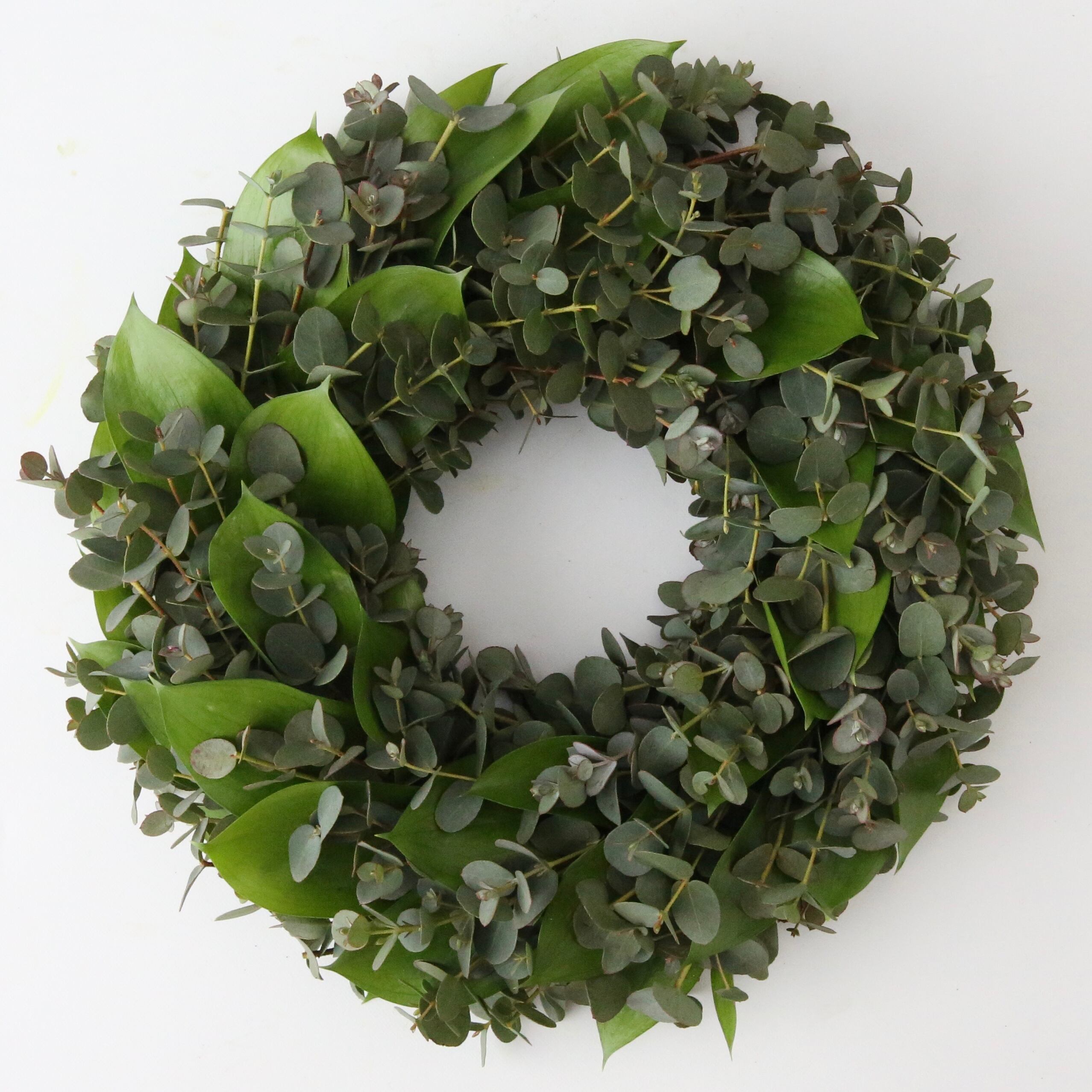 ユーカリとルスカスを贅沢に使って作ったリースです。