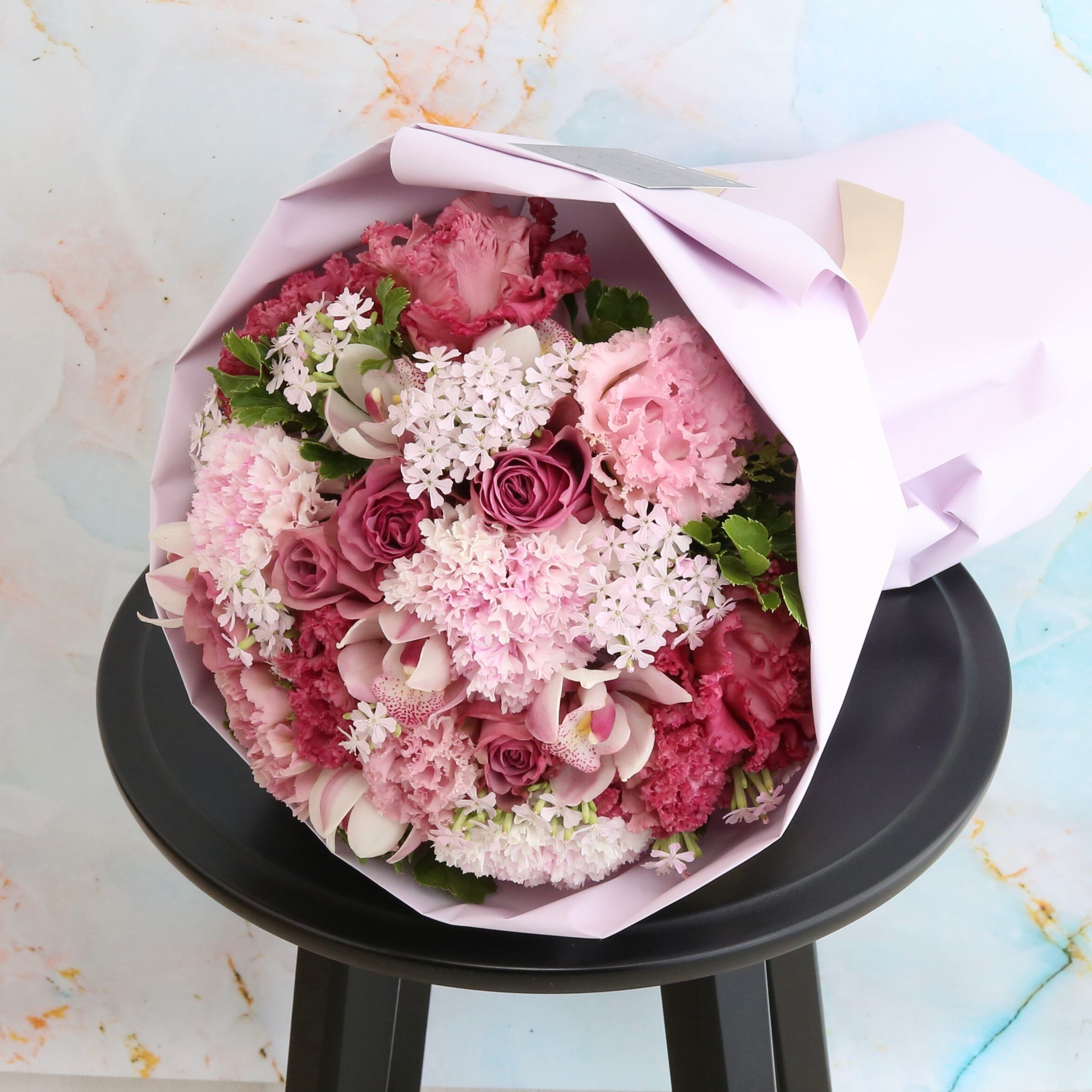 宙花おすすめのピンク系のお花で作ったブーケです。