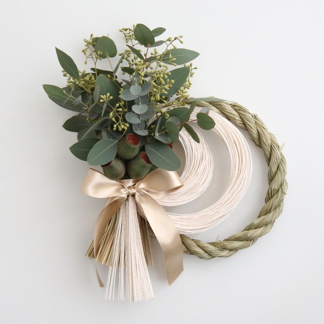 しめ縄、水引、ユーカリ等で作ったお正月飾りです。