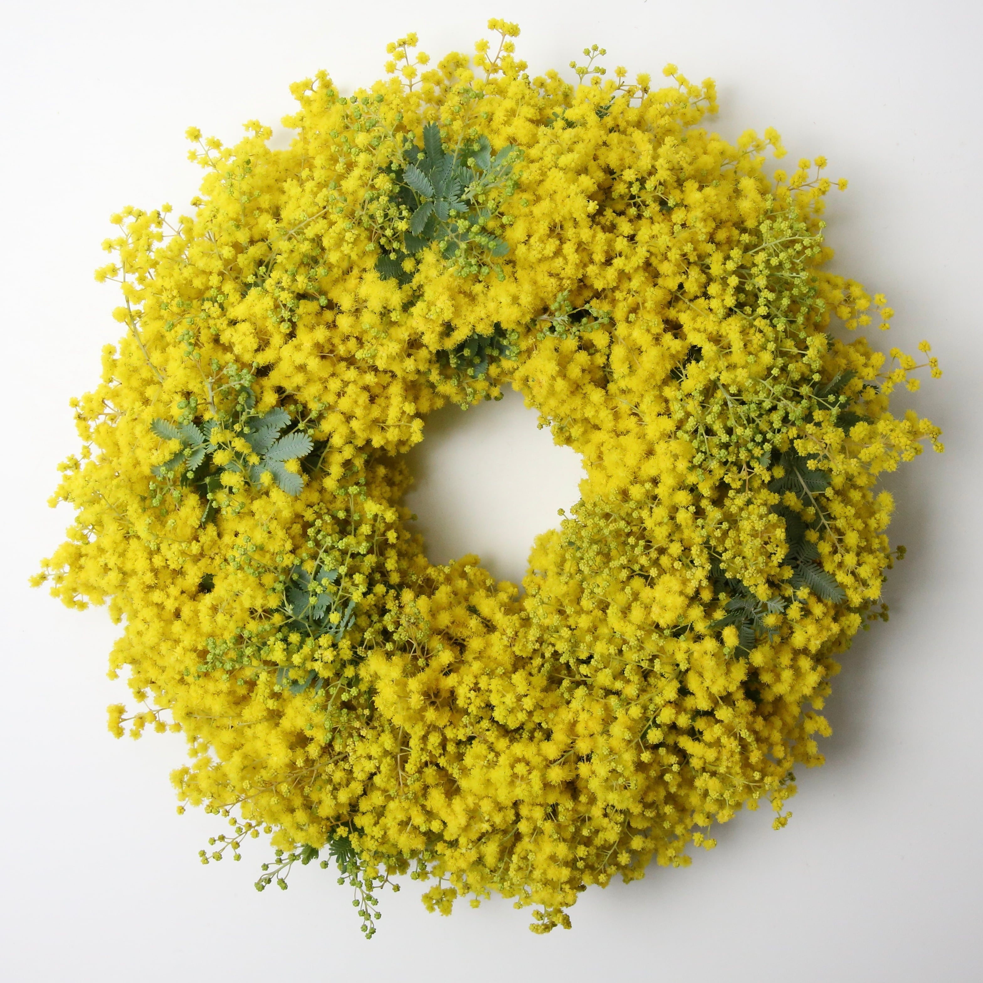 ミモザを贅沢に使って作ったリースです。