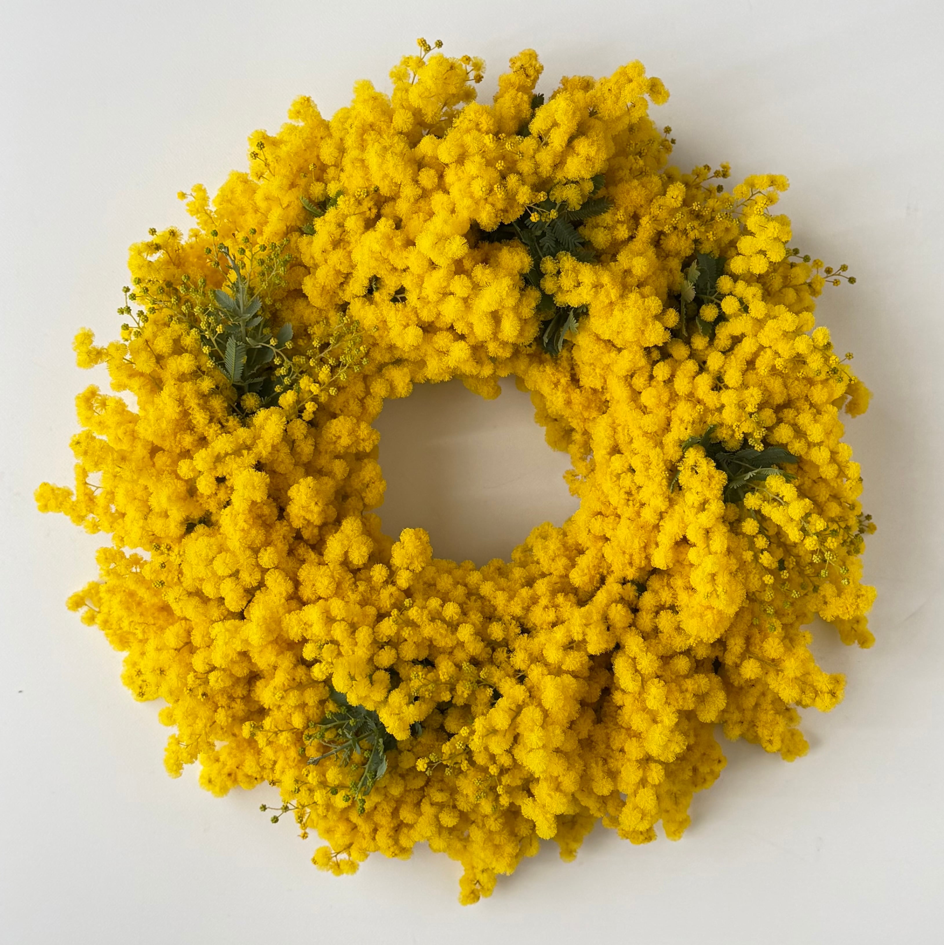 ミモザを贅沢に使って作ったリースです。