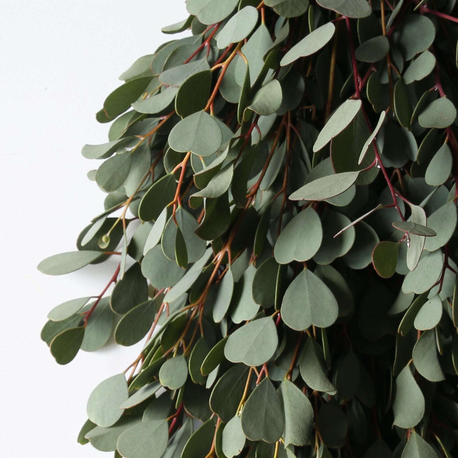 ハートの形をした葉っぱのユーカリ(ユーカリウェブステリアナ)だけをシンプルに束ねたスワッグです。