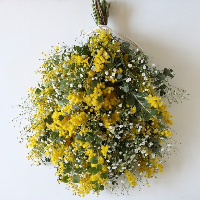ミモザは真珠葉アカシア、銀葉アカシア等、状態の良いものを仕入れお作り致します。