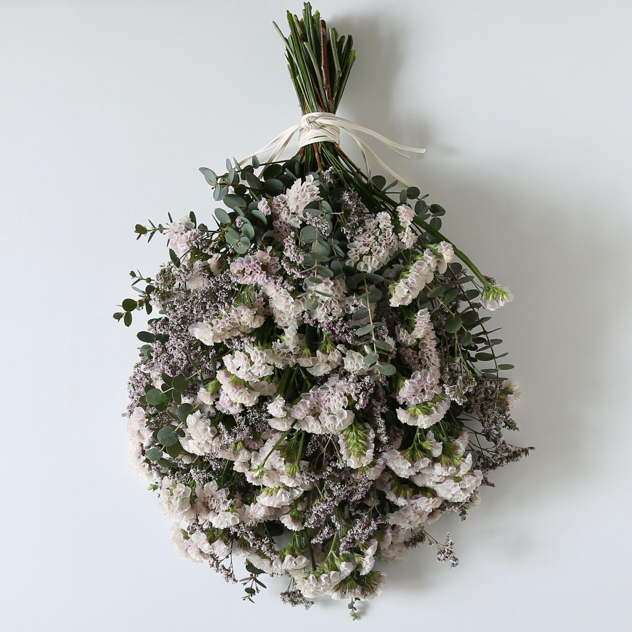 スターチス2種類とユーカリグニーを束ねたスワッグです。