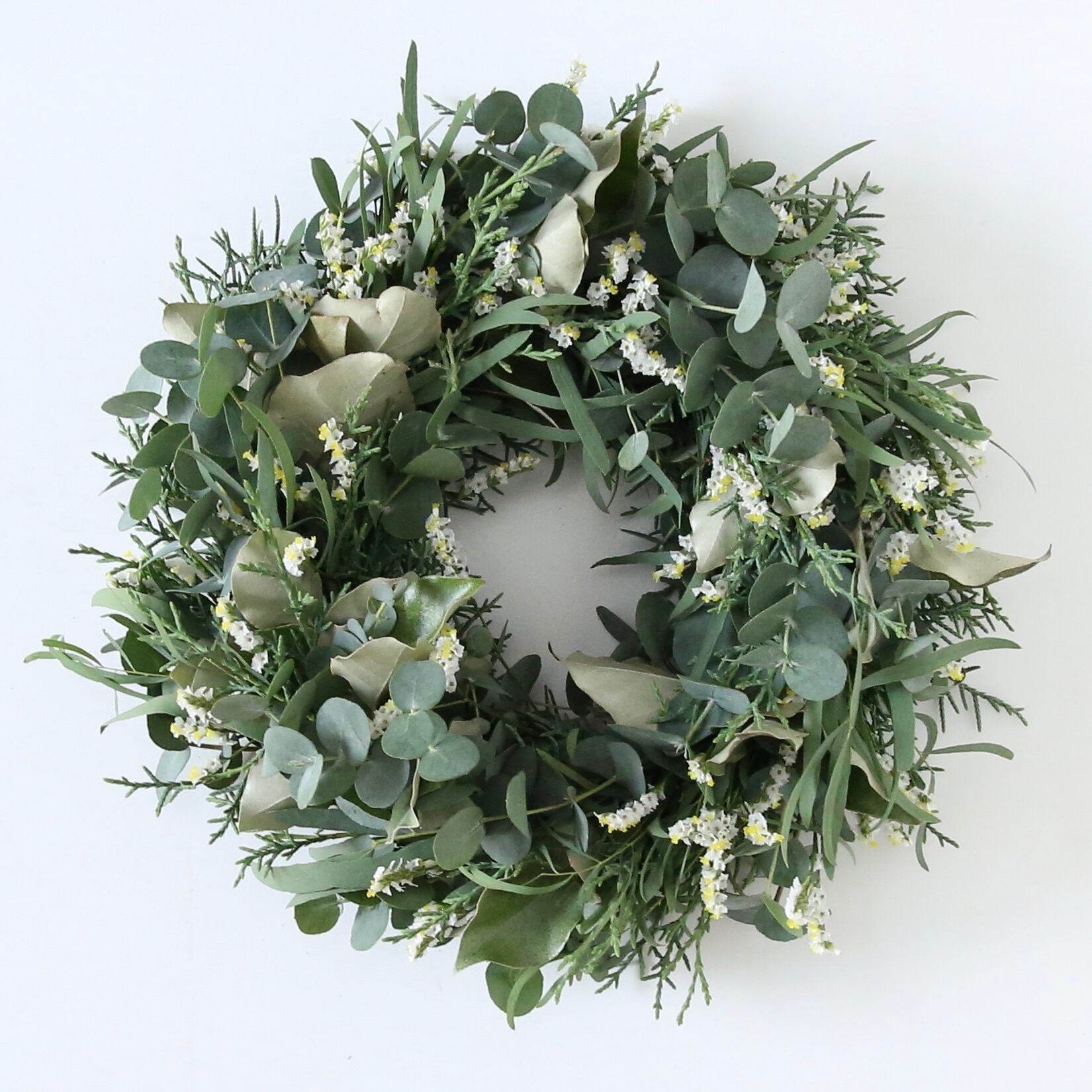 ユーカリやブルーアイス、リモニュームなどで作ったリース