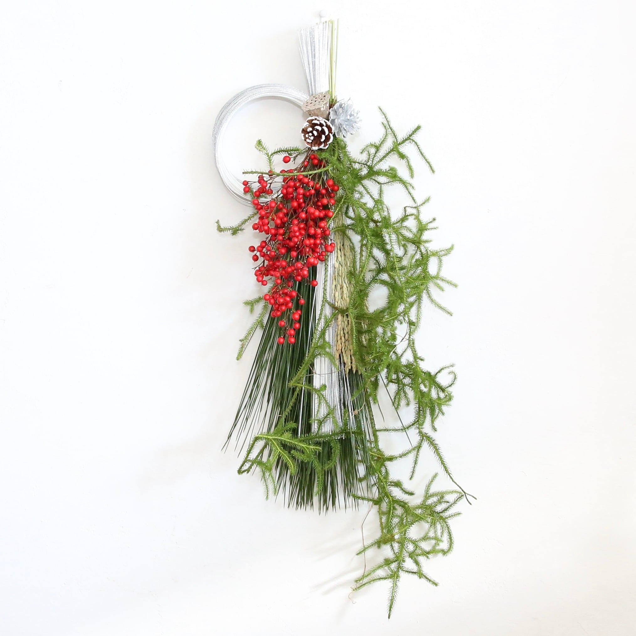 大王松に、ヒカゲカズラや水引、南天等で作ったお正月飾りです。